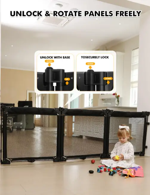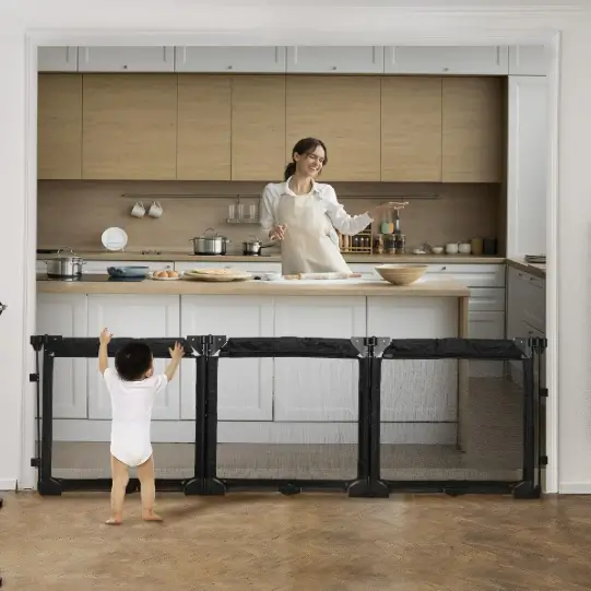 The Dearlomum extra wide gate playpen features heat-resistant mesh panels, making it a safe choice for separating children or pets from fireplaces, heaters, or kitchen areas. Its three-panel foldable design allows for flexible placement and easy storage when not in use. The sturdy construction provides a reliable barrier both indoors and outdoors, offering protection without needing permanent installation. Ideal for homes with kids, dogs, or open floor plans, it gives you a simple way to create safe zones wherever needed