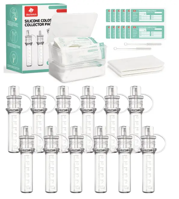 The Dearlomum colostrum collector kit provides a safe and convenient way to gather and store valuable early milk with its 6ml reusable containers. Each set includes 12 collectors, a storage case, and a cotton wipe, giving new mothers everything they need for clean and organized collection. The BPA-free material ensures purity and protection, keeping colostrum safe for feeding or later use. Compact and portable, it’s an excellent tool for preparing ahead of birth or supporting early breastfeeding moments in the hospital or at home