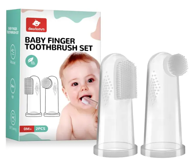 dearlomum Baby Finger Toothbrush for Training Teething, Newborns Toddler Silicone Toothbrush,Baby Oral Cleaner Massager, 2PCS