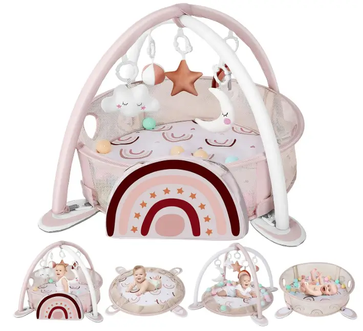 dearlomum 4-in-1 Baby Play Mat Baby Gym,Tummy Time Mat for Floor Activity Gym Ball Pit Including 30 Balls with 5 Infant Learning Sensory Baby Toys for Newborn Toddler Boy & Girl Gifts